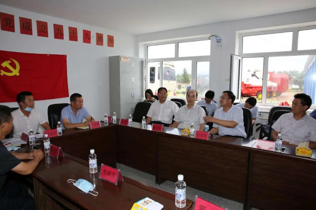在興隆鄉(xiāng)新建村,焦開河聽取了大崗村、新發(fā)村和新建村關(guān)于農(nóng)機服務隊項目運行情況、收益和減貧的情況介紹,詳細了解了項目幫扶機制及未來發(fā)展想法。焦開河表示,農(nóng)機服務隊不僅實現(xiàn)了對貧困戶的幫扶,還可以通過創(chuàng)收、維護、解決就業(yè),帶動農(nóng)業(yè)機械化發(fā)展,是一個可持續(xù)項目。他強調(diào),下一步要整合好各村農(nóng)機服務隊,實現(xiàn)更大規(guī)模的連片種植。焦開河專門叮囑集團公司派駐大崗村第一書記吳寶明,要充分發(fā)揮駐村第一書記作用,抓好黨建工作,積極培育致富帶頭人,為大崗村后續(xù)發(fā)展奠定好基礎(chǔ)。