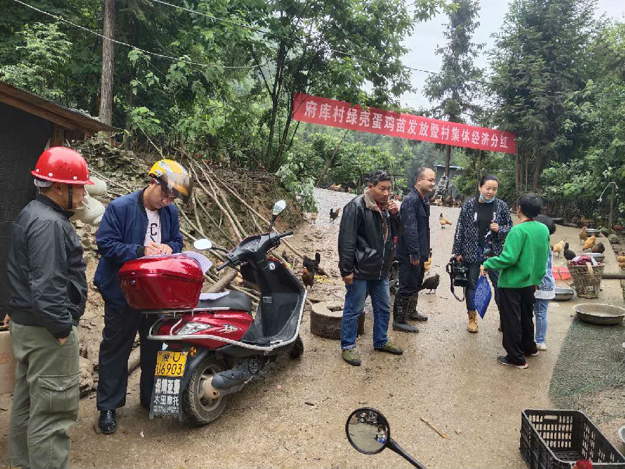 5月13日上午,府庫村迎來一次新鮮的村集體經(jīng)濟(jì)分紅,這次分紅的不是白花花的錢,而是嘰嘰喳喳的小雞仔,村民集聚在村頭養(yǎng)殖大棚外,躍躍欲試地等待6000羽綠殼蛋雞苗的免費分發(fā)。村民彭煉喜笑顏開地數(shù)著自家分到的雞仔說道:“有了這48只雞仔,下半年又能生下滿滿的富貴蛋,幫我們買還幫我們銷,這下不愁拔窮根了!”
