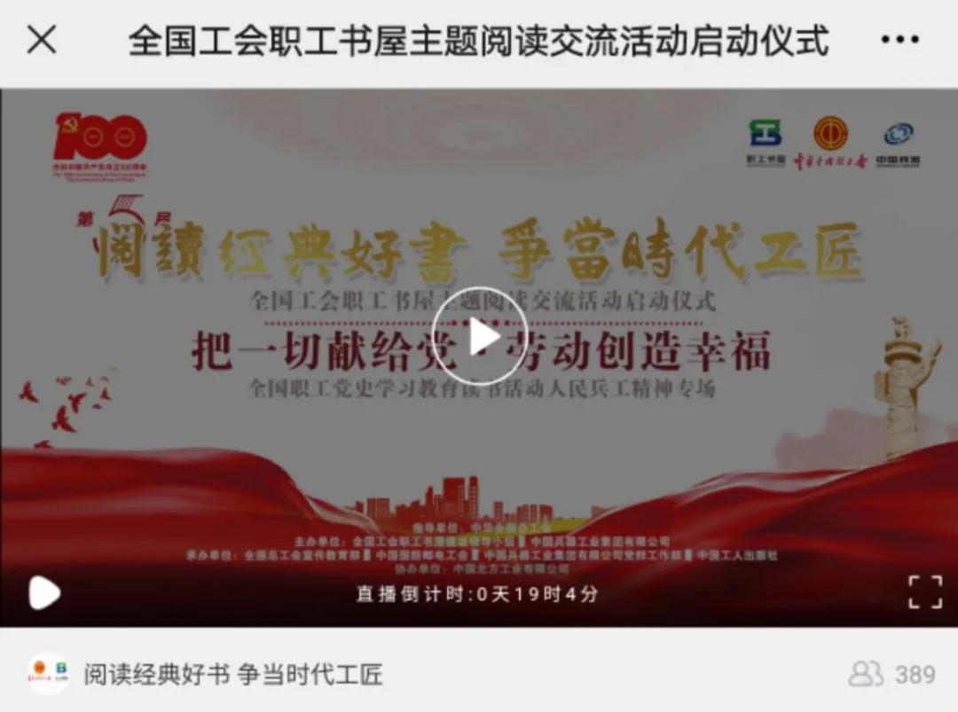 又到一年世界讀書日,激蕩在全國職工朋友心中的“閱讀經(jīng)典好書 爭當時代工匠”又一次在神州大地叫響。今年,“把一切獻給黨 勞動創(chuàng)造幸福”成為了閃亮的主題,在億萬職工中掀起心潮。 今天(4月23日)下午 15:00,第五屆“閱讀經(jīng)典好書 爭當時代工匠”全國工會職工書屋主題閱讀交流活動啟動儀式暨“把一切獻給黨·勞動創(chuàng)造幸?!?/strong>全國職工黨史學(xué)習教育讀書活動人民兵工精神專場隆重開啟! 多項閱讀計劃同場發(fā)布、多本經(jīng)典好書現(xiàn)場推薦、多位職工誦讀演繹紅色經(jīng)典、勞模代表進行閱讀分享和倡議,讓我們共同在閱讀中感悟紅色經(jīng)典,在活動中傳承精神力量。 這一年一度的全國職工閱讀盛典,你還在等什么! 看!在建黨百年的歷史節(jié)點,職工現(xiàn)場誦讀紅色經(jīng)典《把一切獻給黨》,傳承以吳運鐸為代表的人民兵工精神,感悟經(jīng)典的魅力和信仰的力量。 聽!來自兵器工業(yè)集團的全國勞模代表在現(xiàn)場,向廣大職工朋友發(fā)出閱讀倡議。分享在黨的領(lǐng)導(dǎo)下,大國重器由跟仿跟研到世界領(lǐng)先的蛻變。 來!聚焦現(xiàn)場,正式啟動第五屆“閱讀經(jīng)典好書 爭當時代工匠”全國工會職工書屋主題閱讀交流活動,同時點亮專屬人民兵工精神的火炬,讓閱讀熱情傾力綻放。 40余家省級工會新媒體 100余家市級工會新媒體 200余家知名企業(yè)工會新媒體 同步直播 精彩即將上演 直播在哪看? STEP1 關(guān)注全總職工書屋微信號 點擊下方菜單欄-活動專區(qū) 觀看直播啦 還可以同步觀看圖片直播 記錄下每個精彩時刻 |