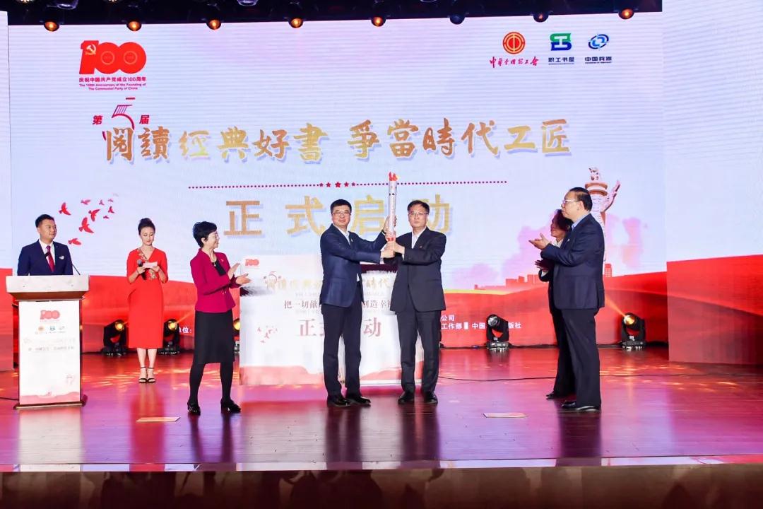 4月23日是第26個(gè)世界讀書日。在中華全國(guó)總工會(huì)指導(dǎo)下,全國(guó)工會(huì)職工書屋建設(shè)領(lǐng)導(dǎo)小組和中國(guó)兵器工業(yè)集團(tuán)有限公司共同舉辦了第五屆“閱讀經(jīng)典好書 爭(zhēng)當(dāng)時(shí)代工匠”全國(guó)工會(huì)職工書屋主題閱讀交流活動(dòng)暨“把一切獻(xiàn)給黨·勞動(dòng)創(chuàng)造幸?!比珖?guó)職工黨史學(xué)習(xí)教育讀書活動(dòng)啟動(dòng)儀式。中華全國(guó)總工會(huì)黨組書記、副主席、書記處第一書記陳剛出席活動(dòng)并講話,中國(guó)兵器工業(yè)集團(tuán)有限公司黨組書記、董事長(zhǎng)焦開河致辭。陳剛向焦開河傳授活動(dòng)火炬。全國(guó)總工會(huì)黨組成員、經(jīng)費(fèi)審查委員會(huì)主任、全國(guó)工會(huì)職工書屋建設(shè)領(lǐng)導(dǎo)小組組長(zhǎng)李曉鐘,全國(guó)總工會(huì)兼職副主席高鳳林,中國(guó)兵器工業(yè)集團(tuán)有限公司黨組副書記周艦出席活動(dòng)。