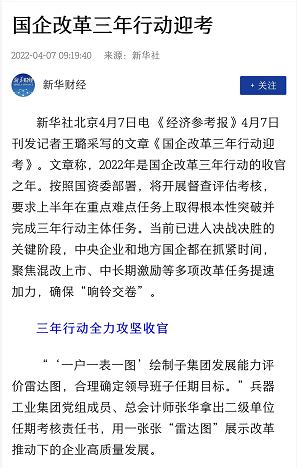 兵器工業(yè)集團(tuán)國企改革三年行動工作成效引發(fā)廣泛關(guān)注丨國企改革看兵器 |