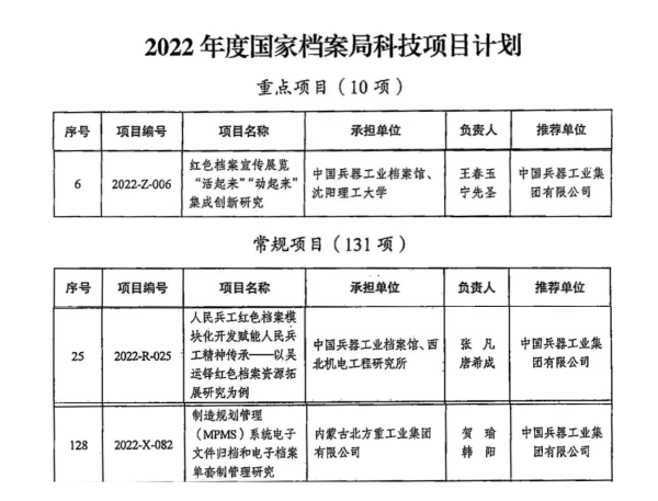 兵器工業(yè)集團(tuán)有關(guān)單位獲批國(guó)家檔案局三項(xiàng)科技項(xiàng)目 |
